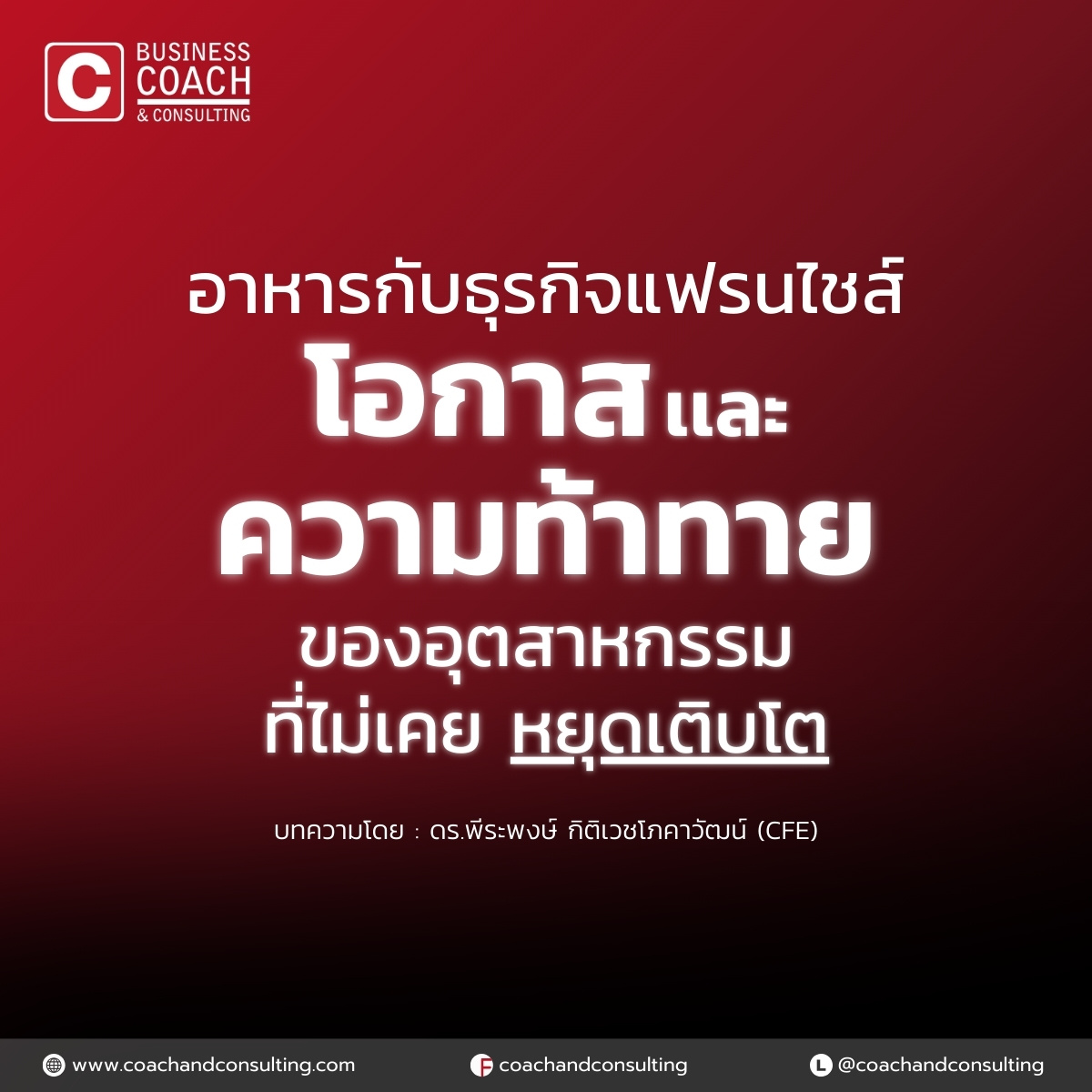 Category Business, Business Insights December 13, 2024 ธุรกิจแฟรนไชส์เป็นรูปแบบการลงทุนที่ได้รับความนิยมเพิ่มขึ้นอย่างต่อเนื่อง และเมื่อพูดถึงการลงทุนในระบบแฟรนไชส์ หลายคนก็มักนึกถึงธุรกิจด้านอาหาร โดยเฉพาะร้านอาหารที่ดำเนินในระบบแฟรนไชส์ ถือเป็นประเภทที่ได้รับความนิยมสูงสุด เหตุใดธุรกิจแฟรนไชส์อาหารจึงเป็นที่น่าสนใจและเติบโตได้ดี? บทความนี้จะพาทุกท่านไปสำรวจความเป็นมา ความนิยม รวมถึงข้อดีและข้อท้าทายของธุรกิจแฟรนไชส์ในอุตสาหกรรมอาหาร ความนิยมและเหตุผลที่ธุรกิจแฟรนไชส์อาหารได้รับความสนใจ ด้วยประสบการณ์กว่า 20 ปีที่ผมพัฒนาระบบแฟรนไชส์ก็พอจะสรุปได้ว่า ธุรกิจแฟรนไชส์ที่เกี่ยวกับอาหารมักเป็นระบบแฟรนไชส์รูปแบบธุรกิจแบบครบวงจร (Business Format Franchising) ที่ไม่เพียงแค่ให้สิทธิ์การขายผลิตภัณฑ์เท่านั้น แต่ยังให้การสนับสนุนในทุกด้าน ตั้งแต่การฝึกอบรม การจัดการการตลาด และระบบการบริหารธุรกิจทั้งหมด ธุรกิจแฟรนไชส์อาหารมีความได้เปรียบเหนือประเภทอื่น เนื่องจากมีโอกาสสร้างกำไรสูง และได้รับความสนใจจากนักลงทุนและผู้บริโภคอย่างต่อเนื่อง ตัวอย่างของแฟรนไชส์อาหารที่เป็นที่รู้จักในระดับสากล ได้แก่ Subway, Denny's, Krispy Kreme และ Dairy Queen ซึ่งขยายธุรกิจในหลายประเทศ ทำให้ผู้บริโภคสามารถเข้าถึงได้ง่ายในราคาที่จับต้องได้ จึงทำให้ลูกค้าสามารถมาซื้อซ้ำได้บ่อย อีกทั้งยังมีการเติบโตอย่างต่อเนื่องทุกปี แบรนด์อาหารใหม่ๆ ที่ขยายตัวในตลาดต่างประเทศ ในขณะที่หลายคนคุ้นหูกับแบรนด์ใหญ่ๆ ก็ยังมีแฟรนไชส์อาหารหน้าใหม่เกิดขึ้นในตลาด เช่น Bad Ass Coffee, Noodles & Company, Wild Noodles, Crescent City Beignets, Fresh City, Pizza Patron และ Famous Famiglia ที่เน้นจำหน่ายพิซซ่า รวมถึงคู่แข่งในตลาดแฮมเบอร์เกอร์อย่าง Jack in the Box แม้ไม่ใช่แบรนด์ที่เป็นที่รู้จักแพร่หลายเหมือนรายใหญ่ แต่ก็มีการเติบโตและขยายสาขาเพื่อเข้าสู่ตลาดใหม่ๆ อย่างต่อเนื่อง อย่างไรก็ตาม แม้ธุรกิจแฟรนไชส์อาหารจะมีศักยภาพสูง แต่ก็ไม่ได้ประสบความสำเร็จเสมอไป เช่น Roy Rogers ที่เคยมีสาขาถึง 650 แห่ง ปัจจุบันลดลงเหลือเพียง 63 สาขา หรือ Long John Silver's ที่เคยหายไปจากตลาด ปัจจุบันพยายามกลับมาขยายสาขาใหม่ร่วมกับแบรนด์ดังอื่นๆ ในเครือ เช่น Taco Bell, KFC และ A&W แนวโน้มการเติบโตของธุรกิจแฟรนไชส์ในอุตสาหกรรมอาหารในประเทศไทย หากมองในภาพรวมของอุตสาหกรรมร้านอาหารในประเทศไทย จะเห็นได้ว่ามีการเติบโตอย่างรวดเร็ว ไม่เพียงแต่ในแง่ของจำนวนสาขา แต่ยังขยายประเภทและรูปแบบของร้านอาหารด้วย มีร้านอาหารที่หลากหลายประเภทเพิ่มขึ้นอย่างเห็นได้ชัดจากเดิมเพียง 50 กว่าประเภท เป็นกว่า 300 ประเภทภายในระยะเวลาไม่ถ