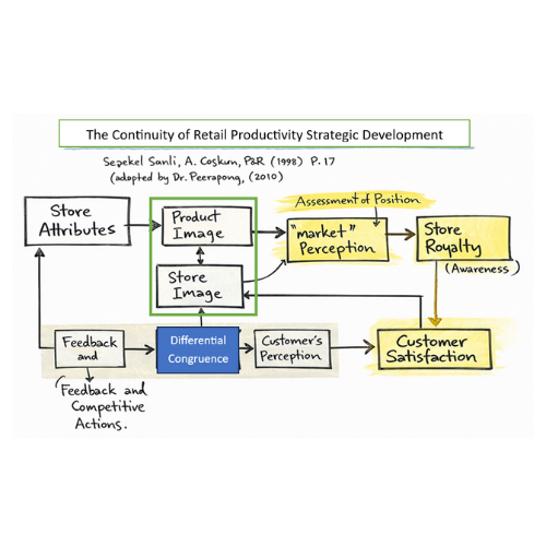 Category Business, Business Insights December 12, 2025 ดร.พีระพงษ์ กิติเวชโภคาวัฒน์ การทำความเข้าใจกระบวนการจัดการธุรกิจค้าปลีก ไม่ว่าจะเป็นร้านค้า ร้านอาหาร โรงแรม หรือธุรกิจที่เกี่ยวข้องโดยตรงกับลูกค้าที่เข้ามาใช้บริหาร ทั้งมีหน้าร้านและไม่มีหรือที่เรียกว่า ร้านค้าออนไลน์ ออฟไลน์ ทั้งหมดจะต้องมีการวางแผนและคำนึงถึงกระบวนการจัดการอย่างเป็นระบบ ซึ่งการนำเสนอแนวทางการพัฒนาต่อเนื่องจะมีในรูปแบบต่อไปนี้ การพัฒนาเชิงกลยุทธ์นี้เราเรียกว่า โมเดล The Continuity of Retail Productivity Strategic Development สามารถอธิบายเป็นความเข้าใจเรื่อง “ผลผลิตของร้านค้าปลีก” ในฐานะกระบวนการต่อเนื่องที่เริ่มจากสิ่งที่ร้านเป็นจริงที่มองเห็นได้ชัด หรือรู้สึกเมื่อเวลาไปจับจ่าย ไปจนถึงผลสัมฤทธิ์สุดท้ายที่ลูกค้ารับรู้และเกิดความพึงพอใจหลังจากได้รับบริการ ซื้อสินค้าจนถึงการให้บริการหลังการขาย ทั้งกระบวนการของระบบธุรกิจที่อาจจะแตกต่างกันไป โมเดลนี้เสนอว่า ประสิทธิภาพและความสำเร็จของร้านค้าปลีกไม่ได้เกิดจากปัจจัยใดปัจจัยหนึ่งเท่านั้น แต่เป็นผลรวมของคุณลักษณะร้าน ภาพลักษณ์ การรับรู้ของตลาด ความภักดีของลูกค้า และการเรียนรู้จากข้อมูลย้อนกลับซึ่งส่งผลให้ร้านพัฒนาตัวเองอย่างไม่หยุดนิ่ง เมื่อพิจารณาแต่ละองค์ประกอบเชื่อมโยงกัน จะเห็นโครงสร้างของระบบที่มีความสัมพันธ์แบบหมุนเวียนอย่างต่อเนื่อง นำไปสู่ความยั่งยืนของแบรนด์ค้าปลีกทั้งระบบ กระบวนการเริ่มต้นจาก Store Attributes ซึ่งหมายถึงตัวตนทางกายภาพและคุณภาพการบริการที่ลูกค้าสัมผัสได้จริง เช่น ทำเลร้าน การจัดวางสินค้า ความสะอาด บรรยากาศในร้าน คุณภาพสินค้า ความเป็นมิตรของพนักงาน หรือความสะดวกในการใช้บริการ ปัจจัยเหล่านี้เป็นต้นน้ำของการรับรู้ทั้งหมดที่ลูกค้าจะมีต่อร้าน เมื่อร้านมีคุณลักษณะที่ดีและสอดคล้องกับความคาดหวังของตลาด ก็จะนำไปสู่การก่อรูป Product Image ซึ่งคือภาพลักษณ์ของสินค้าในมุมมองของลูกค้า ทั้งด้านคุณภาพ ราคา ความคุ้มค่า ความหลากหลาย และความน่าเชื่อถือ ภาพลักษณ์สินค้าที่ดีจะช่วยสร้างความน่าเชื่อถือของร้านและทำให้ลูกค้ารู้สึกมั่นใจในการเลือกซื้อสินค้า ควบคู่กับ Product Image คือ Store Image ซึ่งเป็นภาพรวมในใจของลูกค้าเกี่ยวกับสิ่งที่ร้านเป็น เช่น ร้านนี้เป็นร้านทันสมัยหรือดั้งเดิม เป็นร้านที่มีคุณภาพสูงหรือเน้นความประหยัด เป็นร้านสำหรับไลฟ์สไตล์แบบใด หรือเป็นร้านที่ทำให้ลูกค้ารู้สึกอย่างไร แม้จะเป็นภาพลักษณ์ที่ดูนามธรรม แต่ Store Image กลับมีผลอย่างยิ่งต่อความรู้สึกของลูกค้าและการตัดสินใจกลับมาใช้บริการซ้ำ